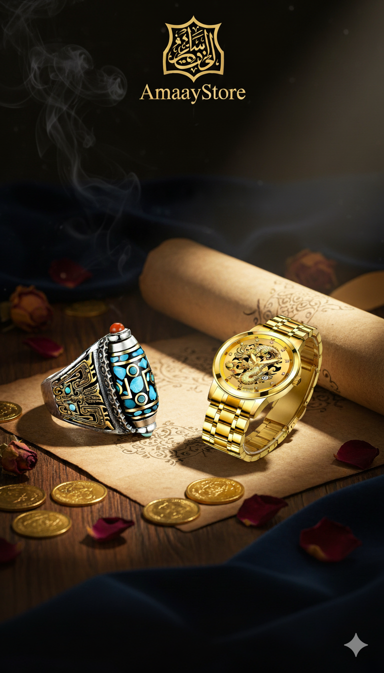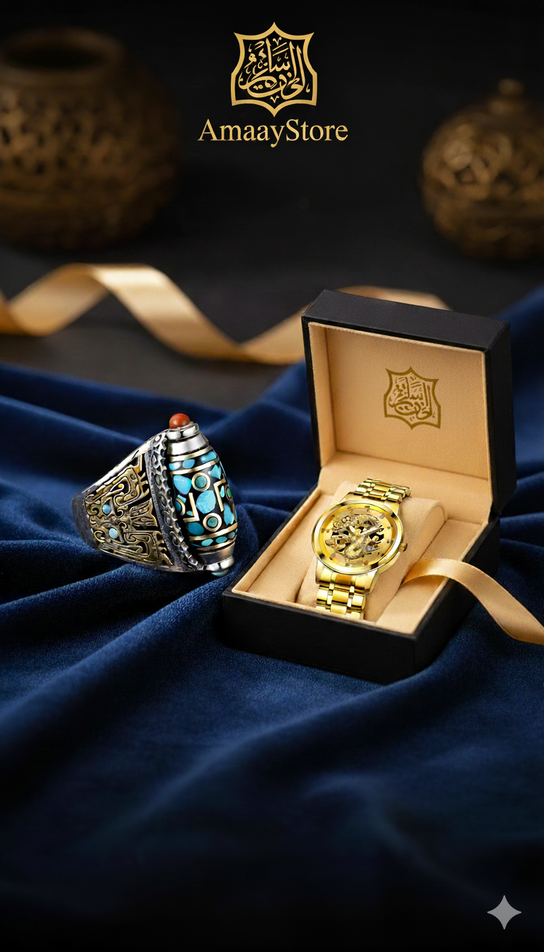 يعتبر الخاتم و الساعة اختياراً مثالياً كهدية مميزة في المناسبات الخاصة، مما يضفي لمسة من الفخامة والتميز لكل من يرتديه.